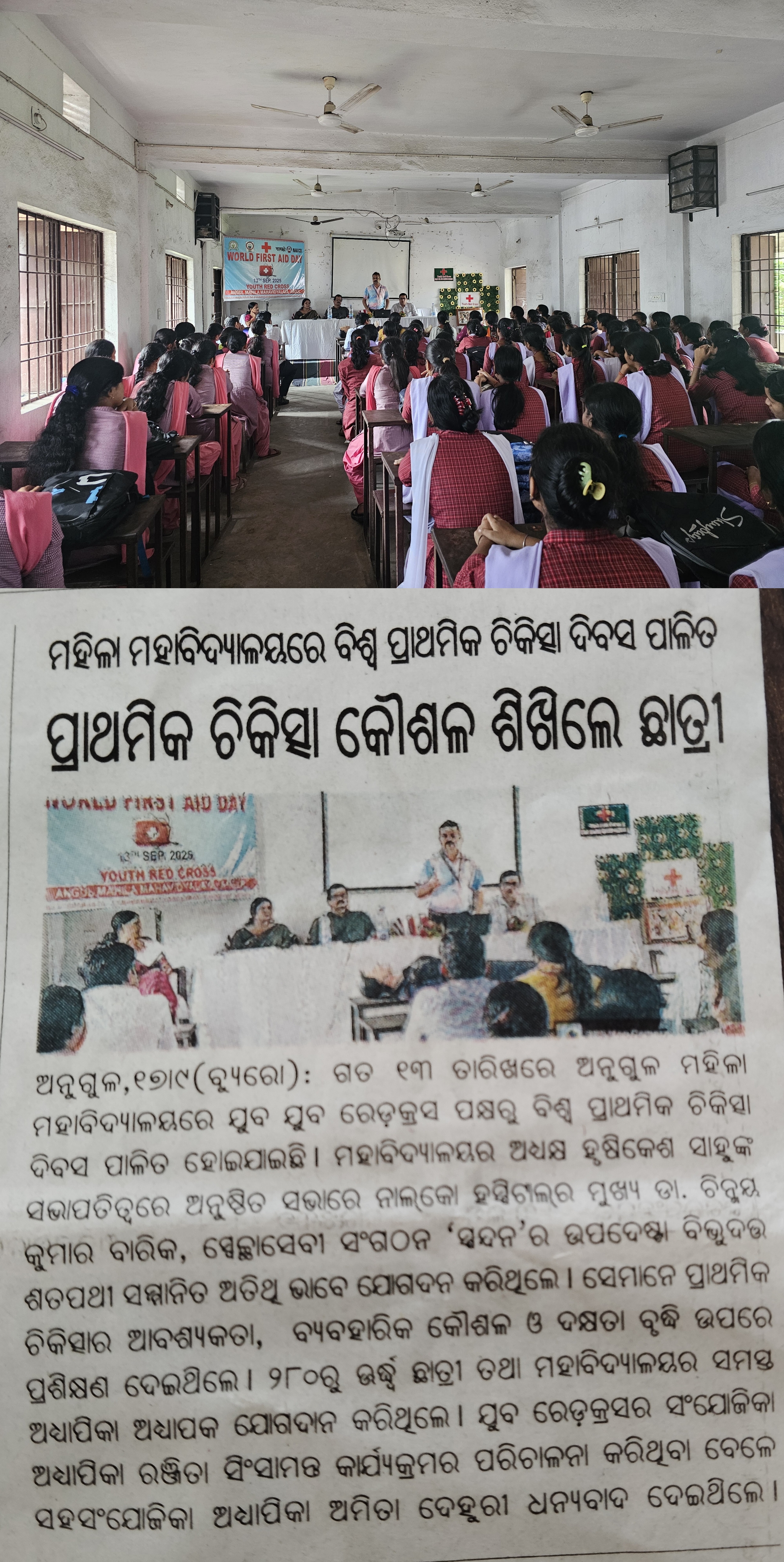 Observation of world first Aid day on 13th September 2025, organised by the YRC of Angul mahila Mahavidyalaya