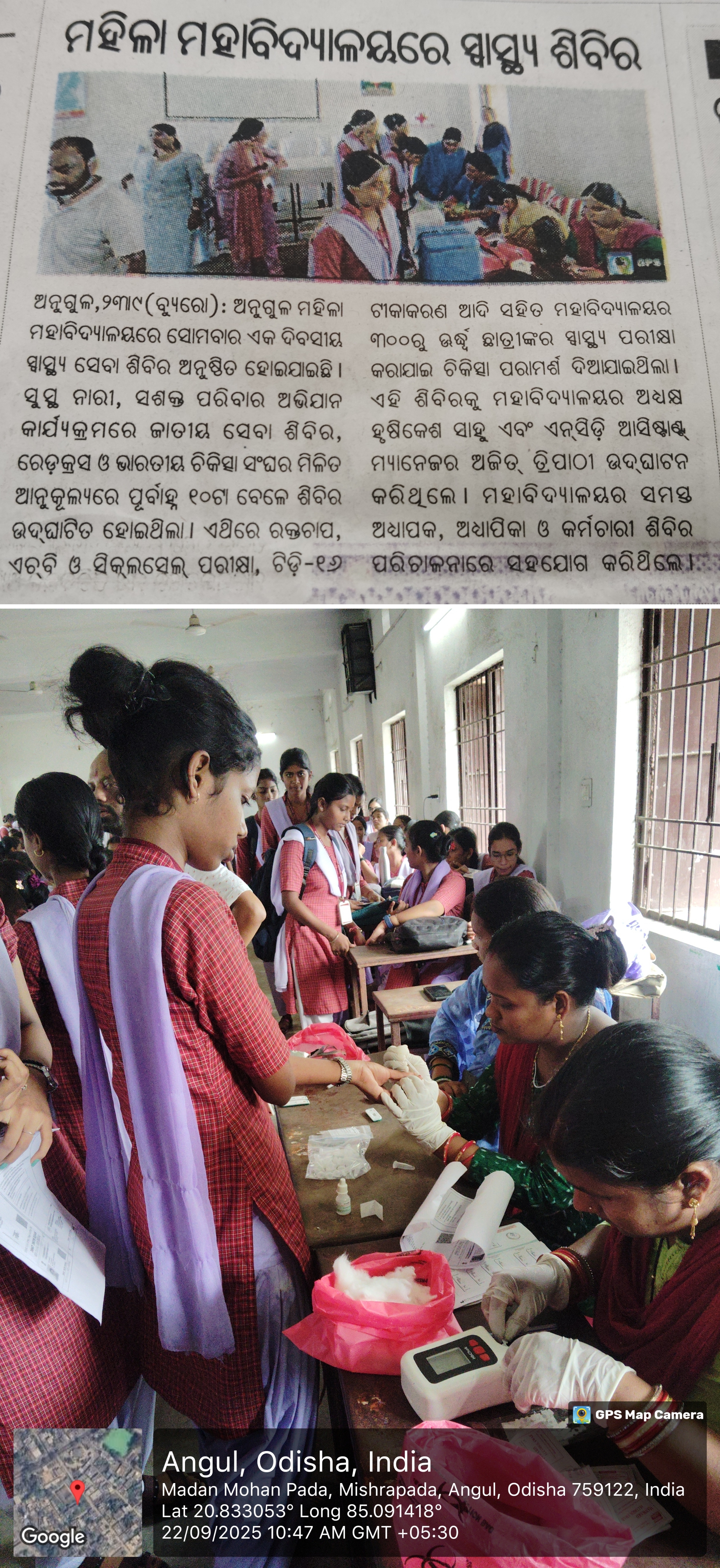 Free health check up camp at angul mahila Mahavidyalaya on 22nd September 2025